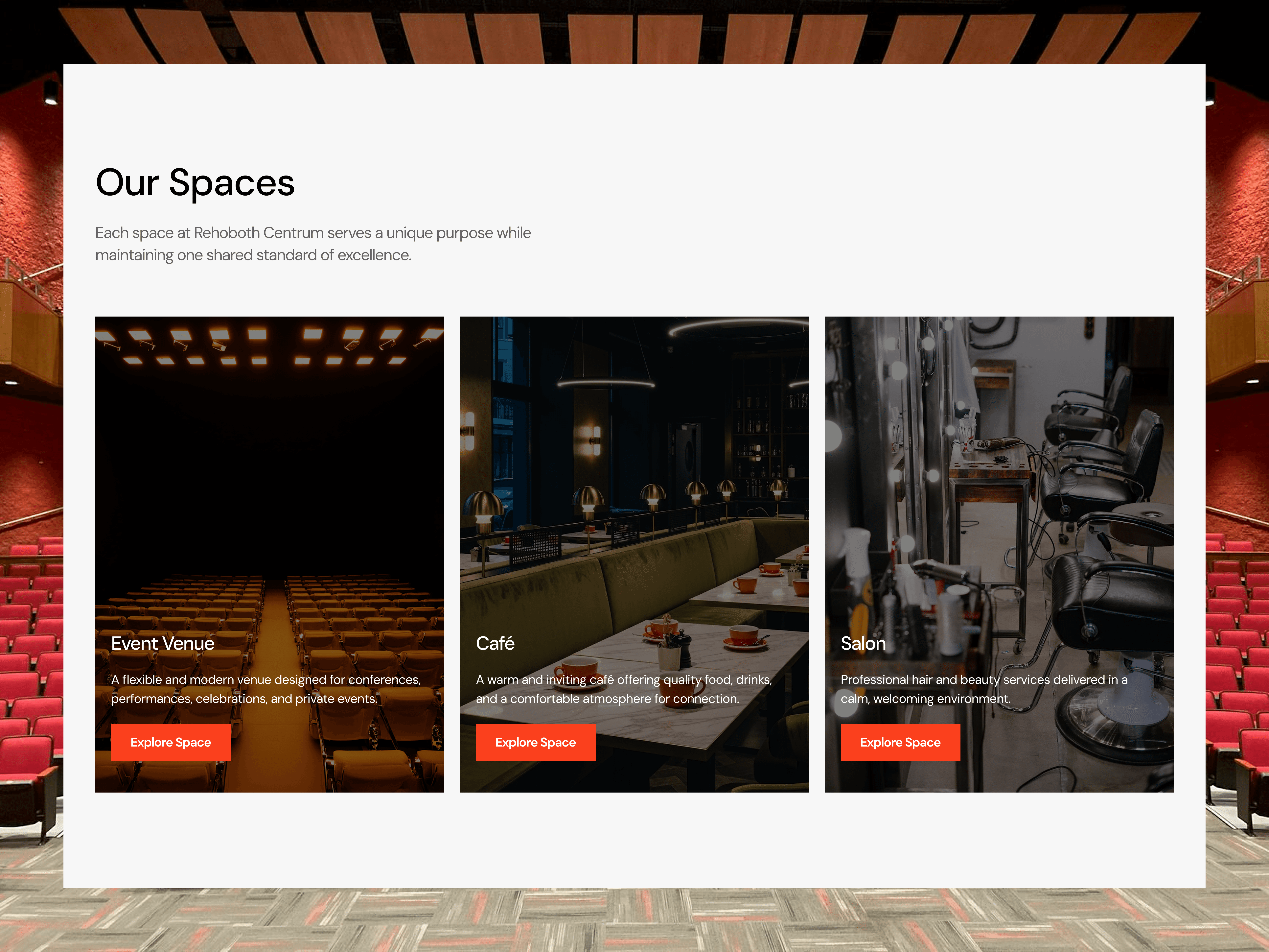 The website successfully translates the physical experience of Rehoboth Centrum into a digital platform that helps users discover the space, explore services, and engage with the brand.